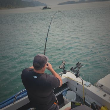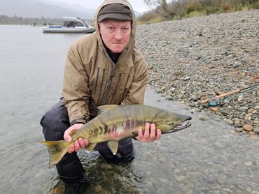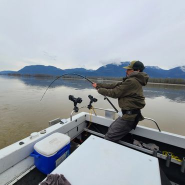 Boat is outfitted with Redington waders for shore pictures, approved life jackets, fire extinguisher, first-aid kit and VHF radio.